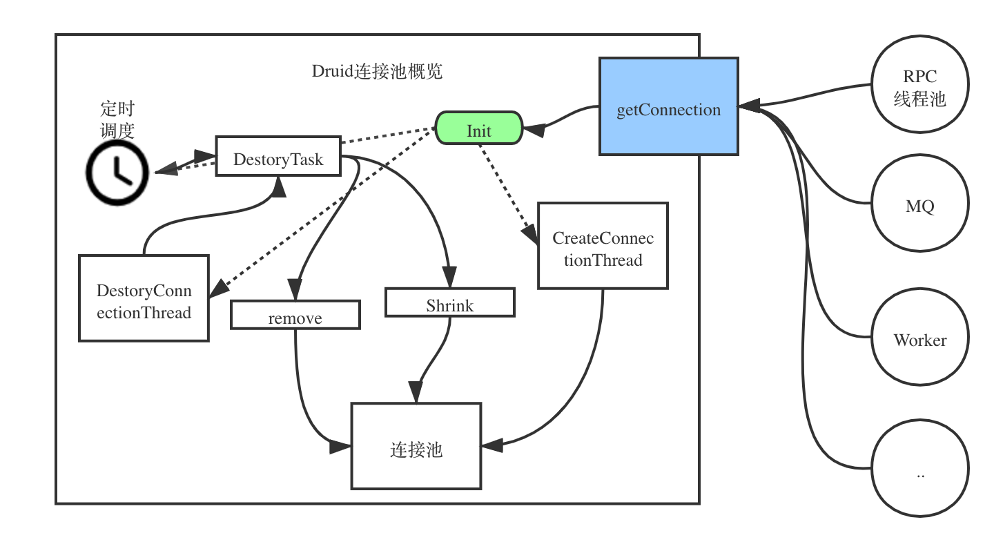 解决的方式采取的是在初始化DruidDataSource后获取一下Connection,这样就不会受到mq线程的影响。