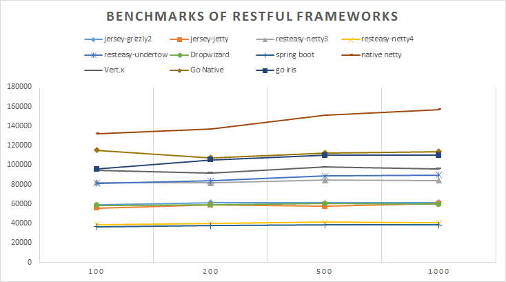 Github上有一篇涉及到springboot、netty的性能对比。对比结果如下: