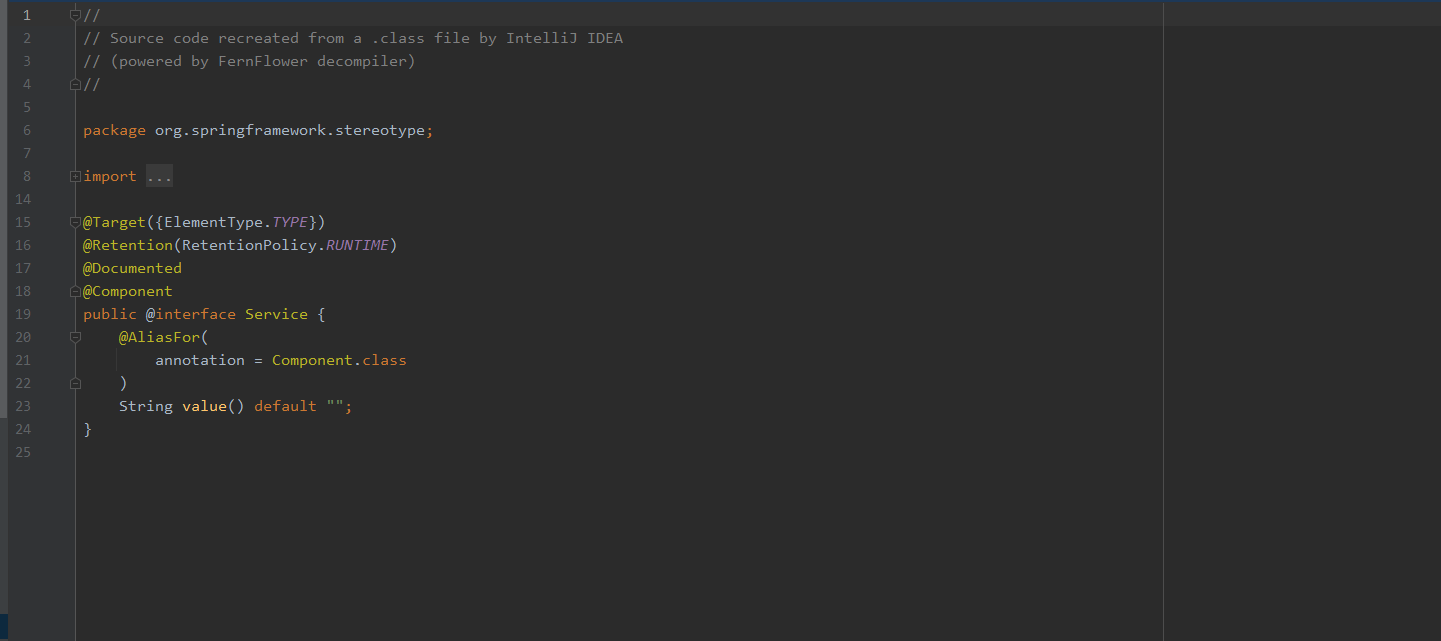 public @interface Service: - 定义了一个名为Service的注解类型。