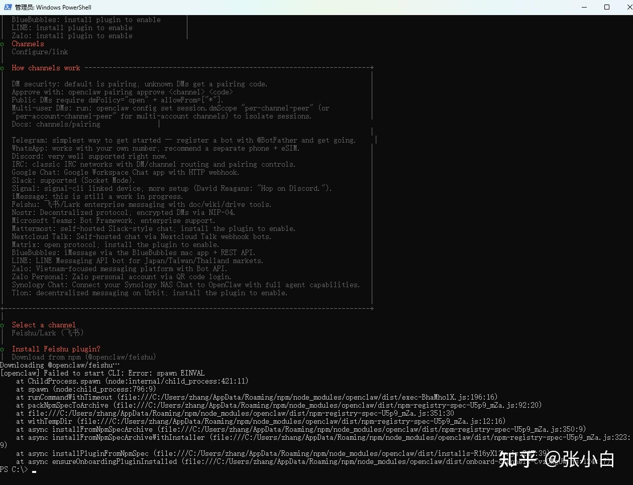 跟ubuntu版本一样的,也有内置的插件,但是安装飞书插件就报错。