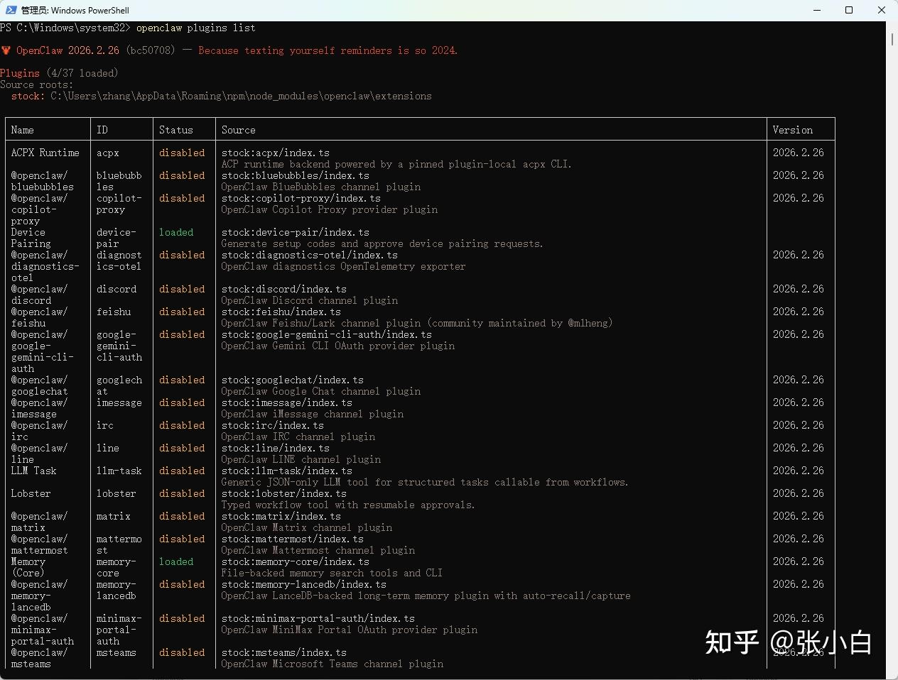 BTW:最新版OpenClaw(图中2.26版本)已经内置了feishu插件。