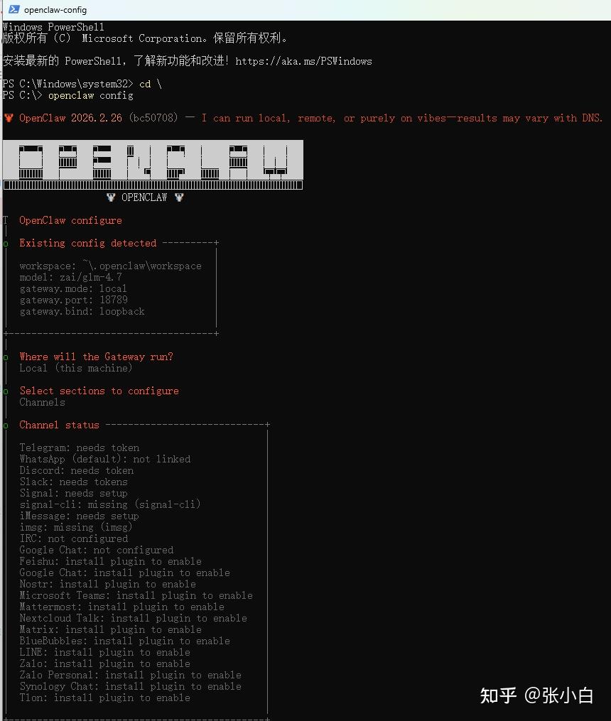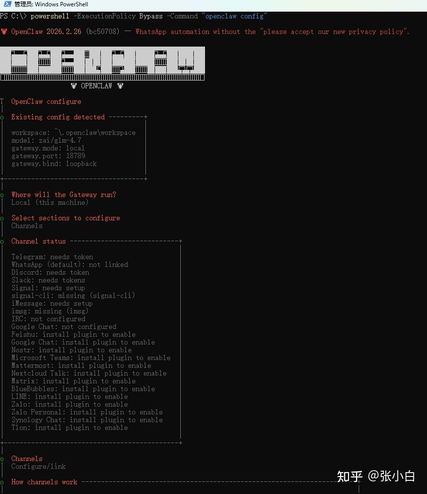 powershell -ExecutionPolicy Bypass -Command "openclaw config"
