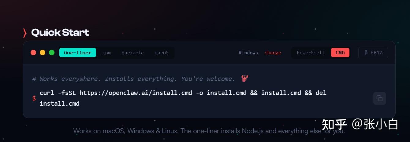 powershell -ExecutionPolicy Bypass -Command "iwr -useb https://openclaw.ai/install.ps1 | iex"