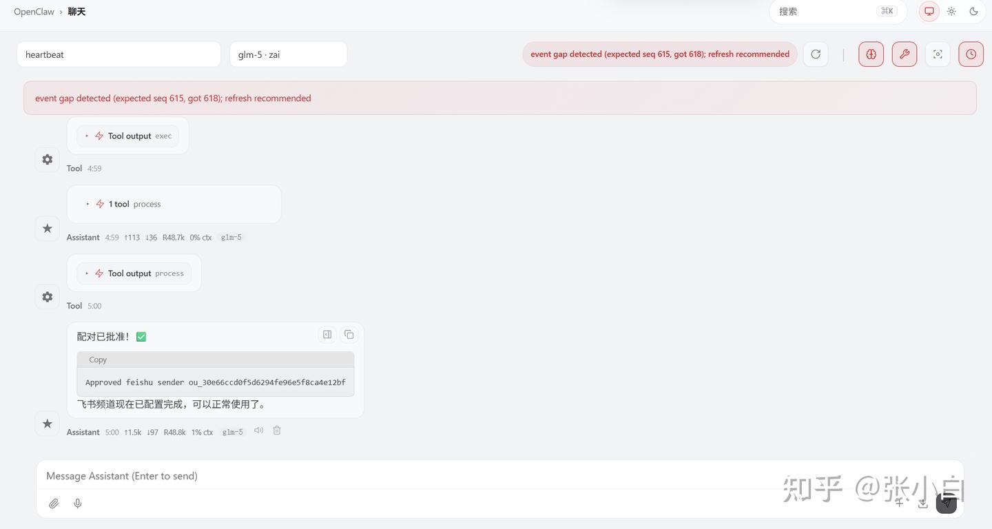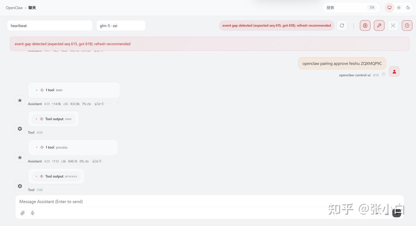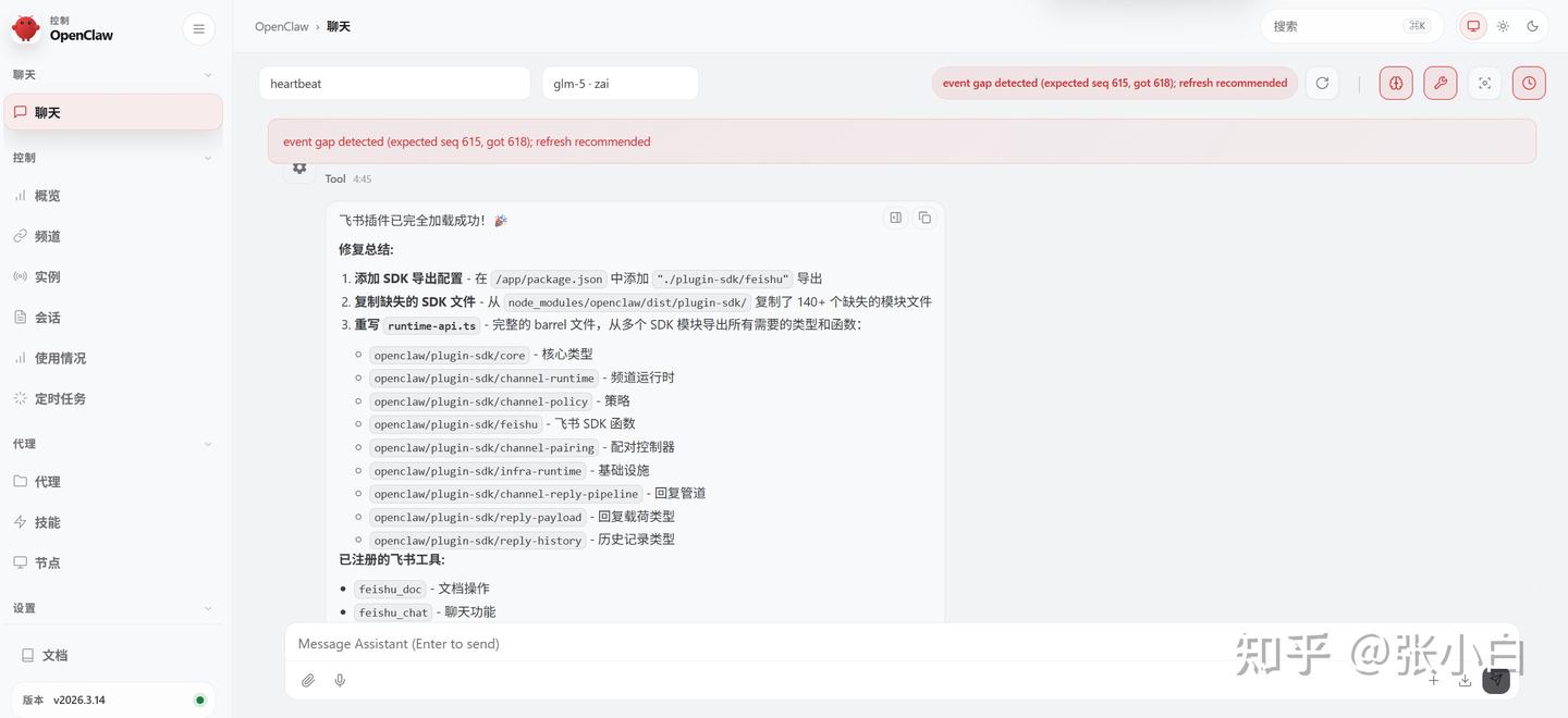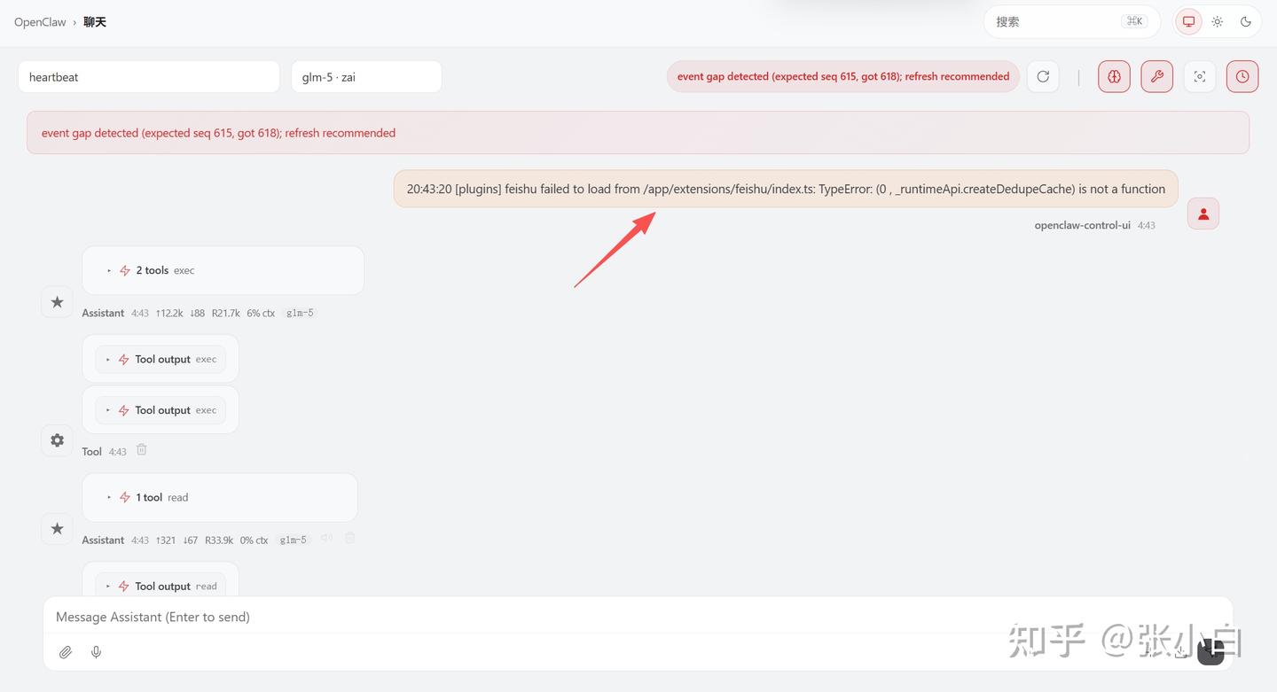 张小白处理这个问题的方法很简单,就是把问题现象放到OpenClaw UI界面的对话框里面: