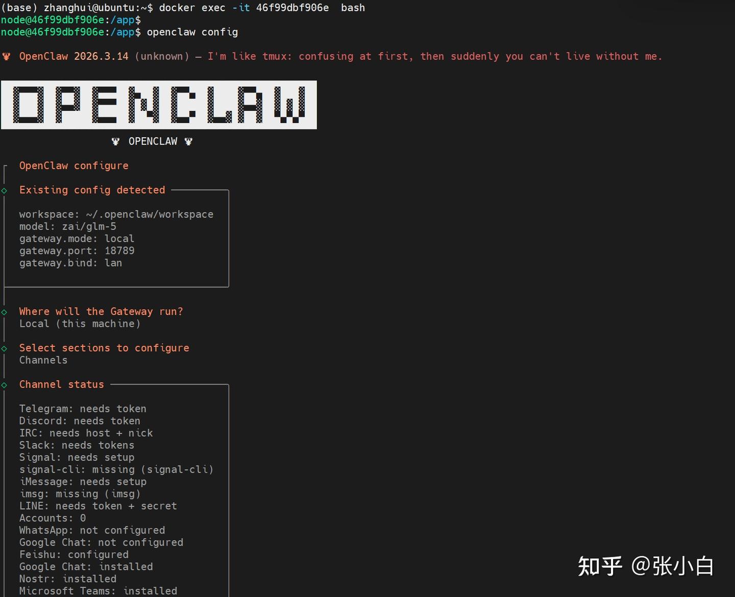 另外打开一个终端,在~/.openclaw/openclaw.json增加以下配置:
