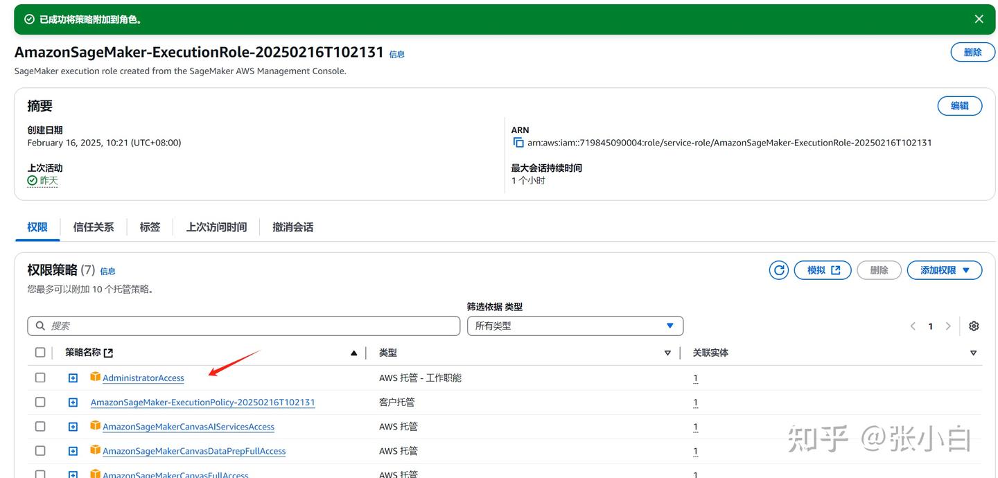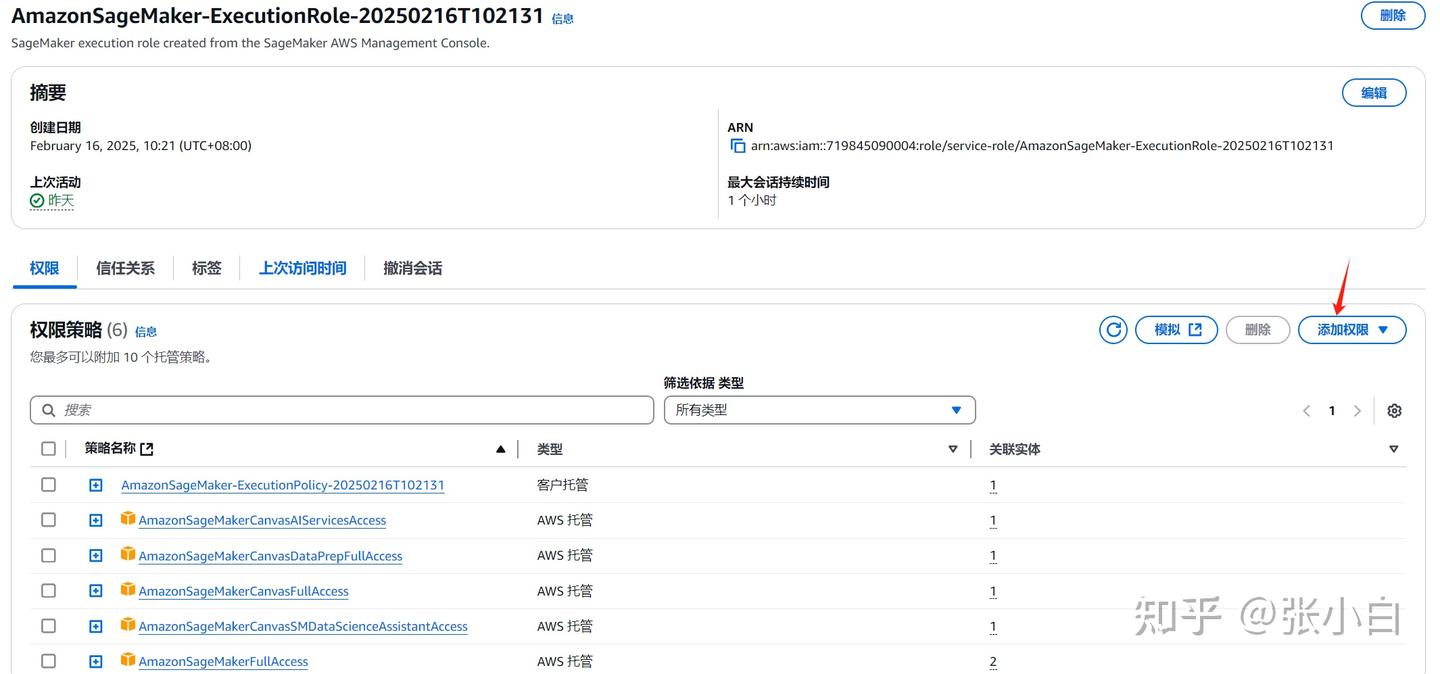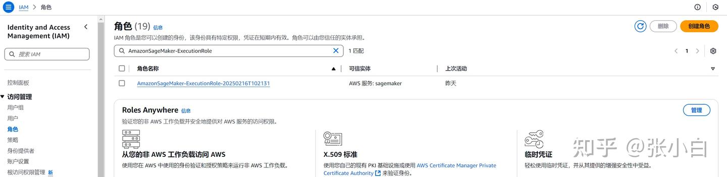 点击左边的角色:搜索AmazonSageMaker-ExecutionRole