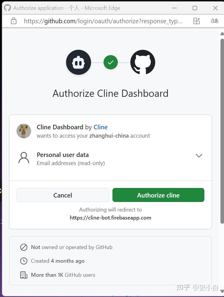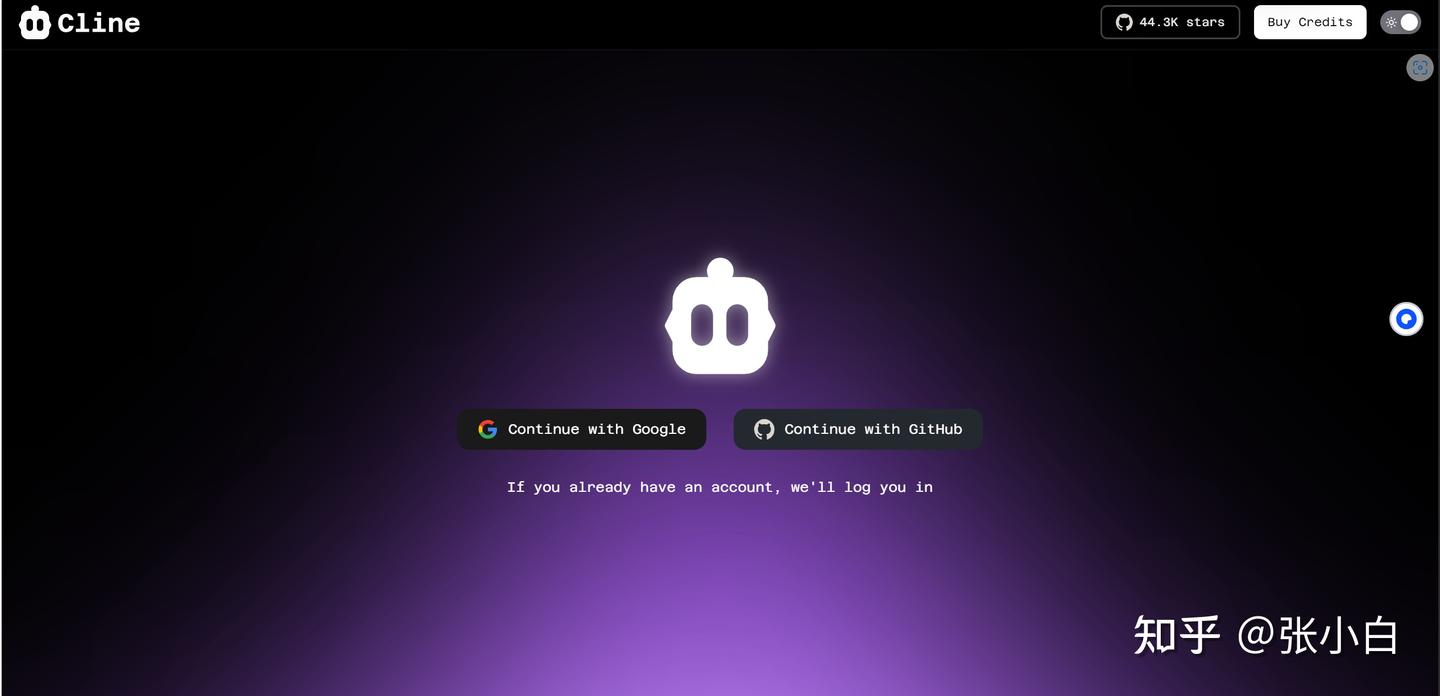 点击打开,会切换到Cline注册登录页面: