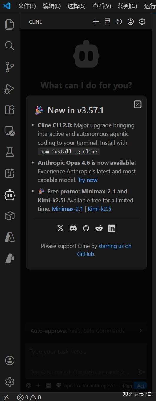 回到VSCode,点击Cline: