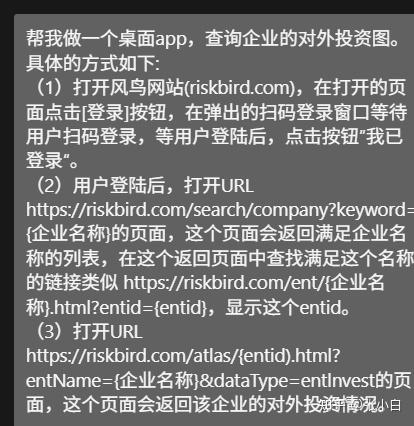 (3)打开URL https://riskbird.com/atlas/{entid).html?entName={企业名称}&dataType=entlnvest的页面,这个页面会返回该企业的对外投资情况。