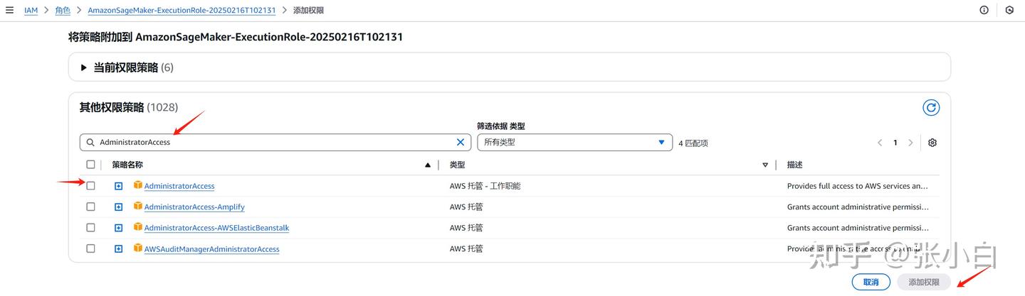 点击“添加权限”-》“附加策略”,搜索AdministratorAccess