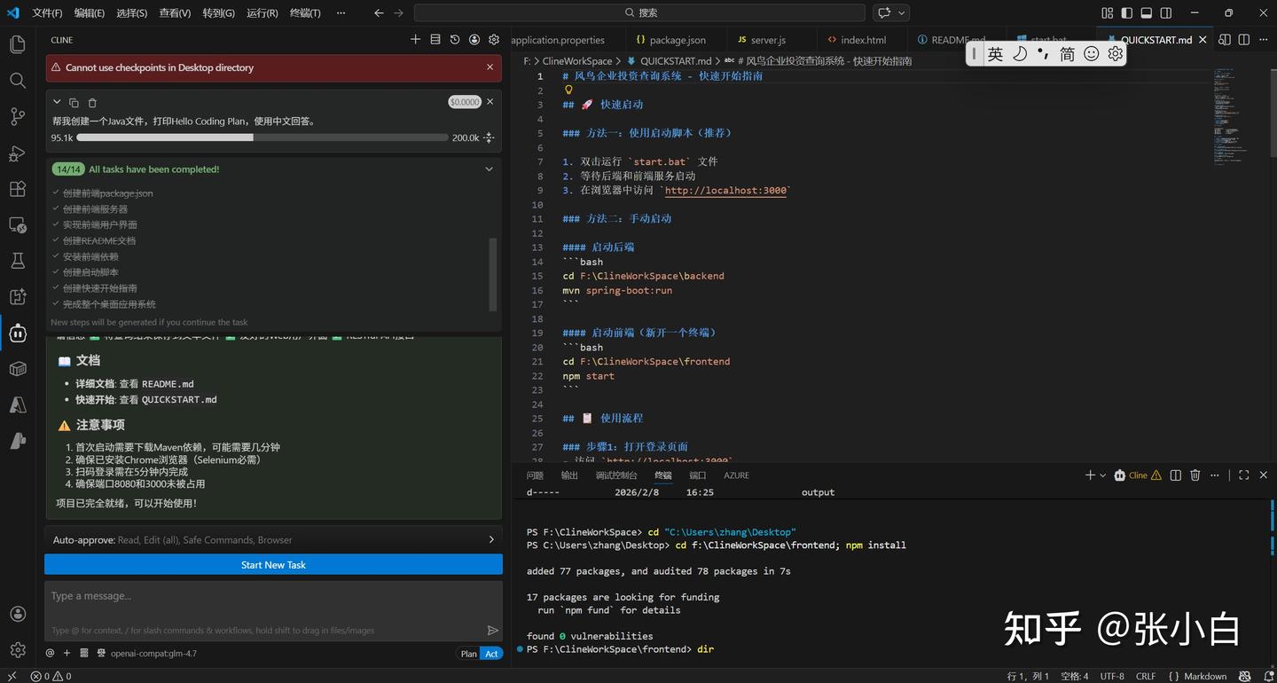 三、使用VSCode+cline+GLM CodingPlan开发APP范例