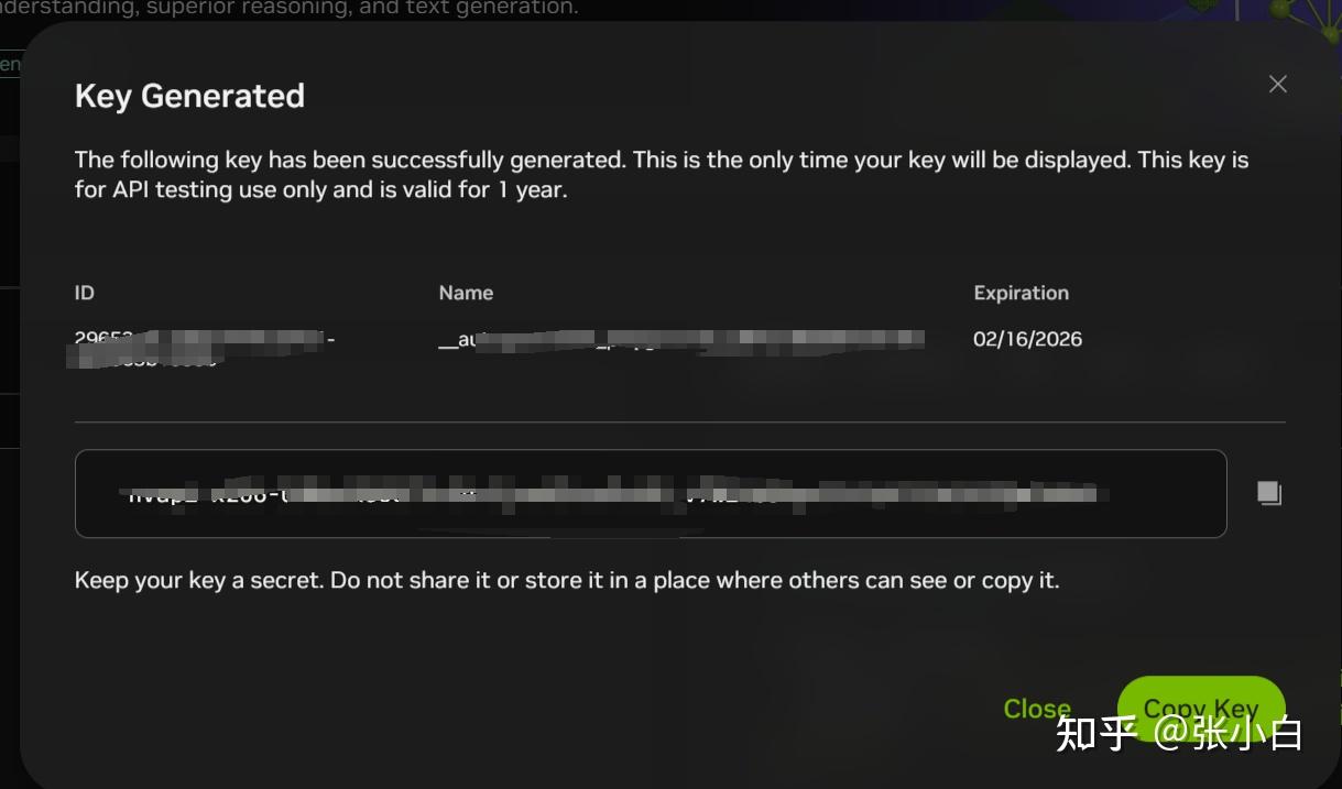 复制该API Key。
