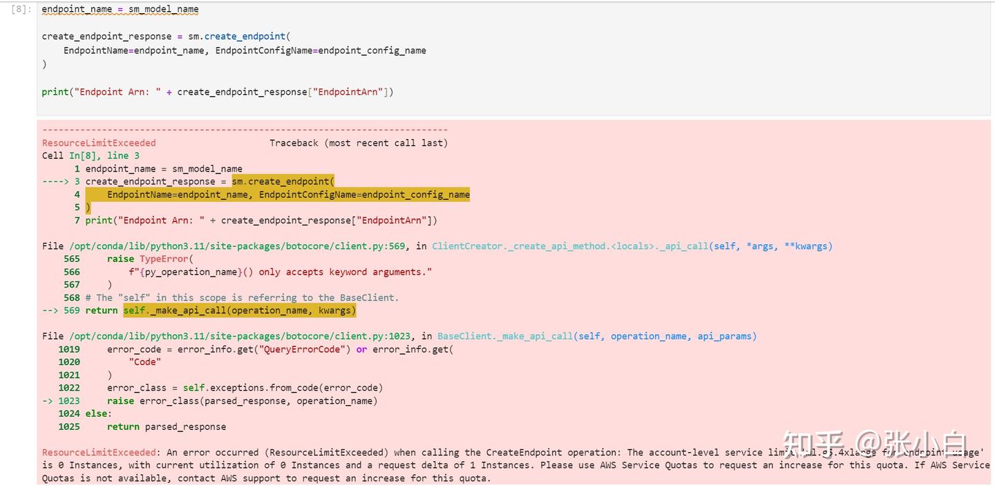 ResourceLimitExceeded: An error occurred (ResourceLimitExceeded) when calling the CreateEndpoint operation: The account-level service limit 'ml.g5.4xlarge for endpoint usage' is 0 Instances, with current utilization of 0 Instances and a request delta of 1 Instances. Please use AWS Service Quotas to request an increase for this quota. If AWS Service Quotas is not available, contact AWS support to request an increase for this quota.