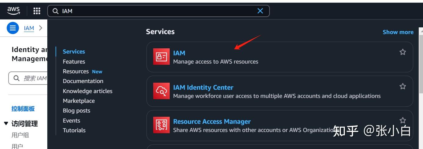 先在主控台搜索IAM,进入: