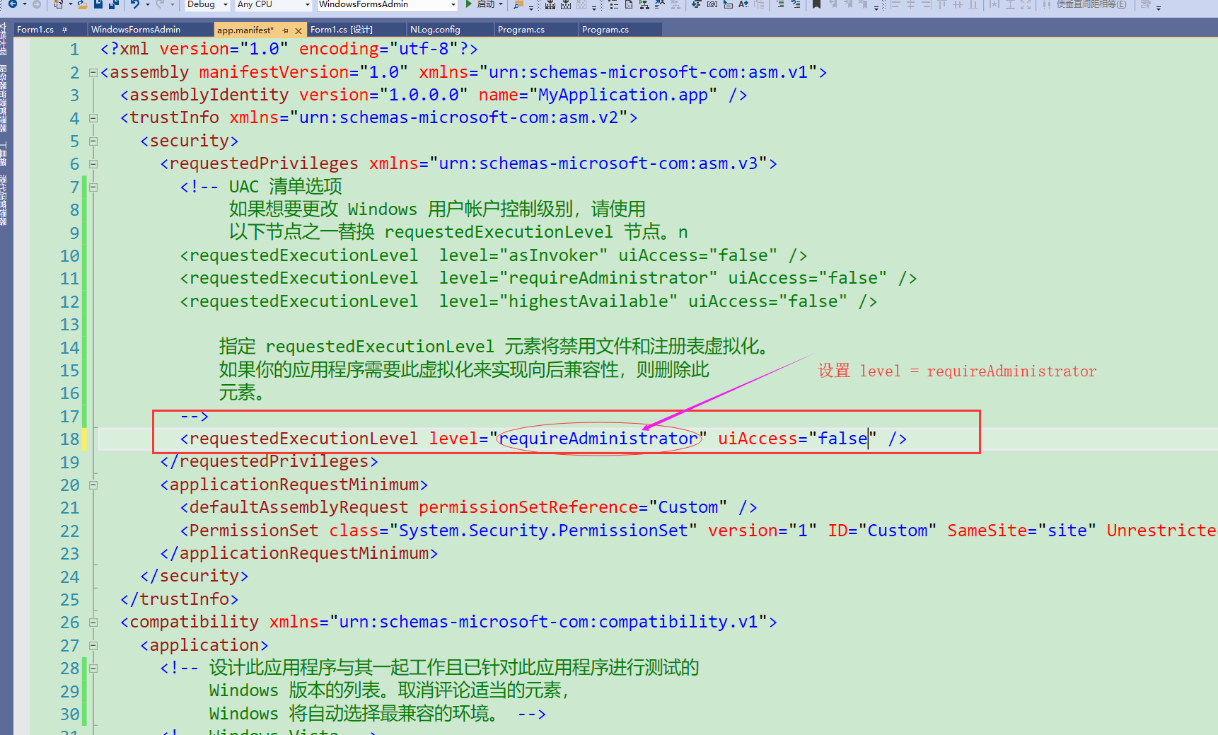 UAC即Windows 用户帐户控制级别以及app.manifest清单选项,如何自动以管理员身份运行.NET程序