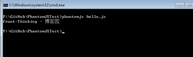 然后,打开CMD命令行工具,切换到你的当前目录,敲入phantomjs hello.js,结果如下: