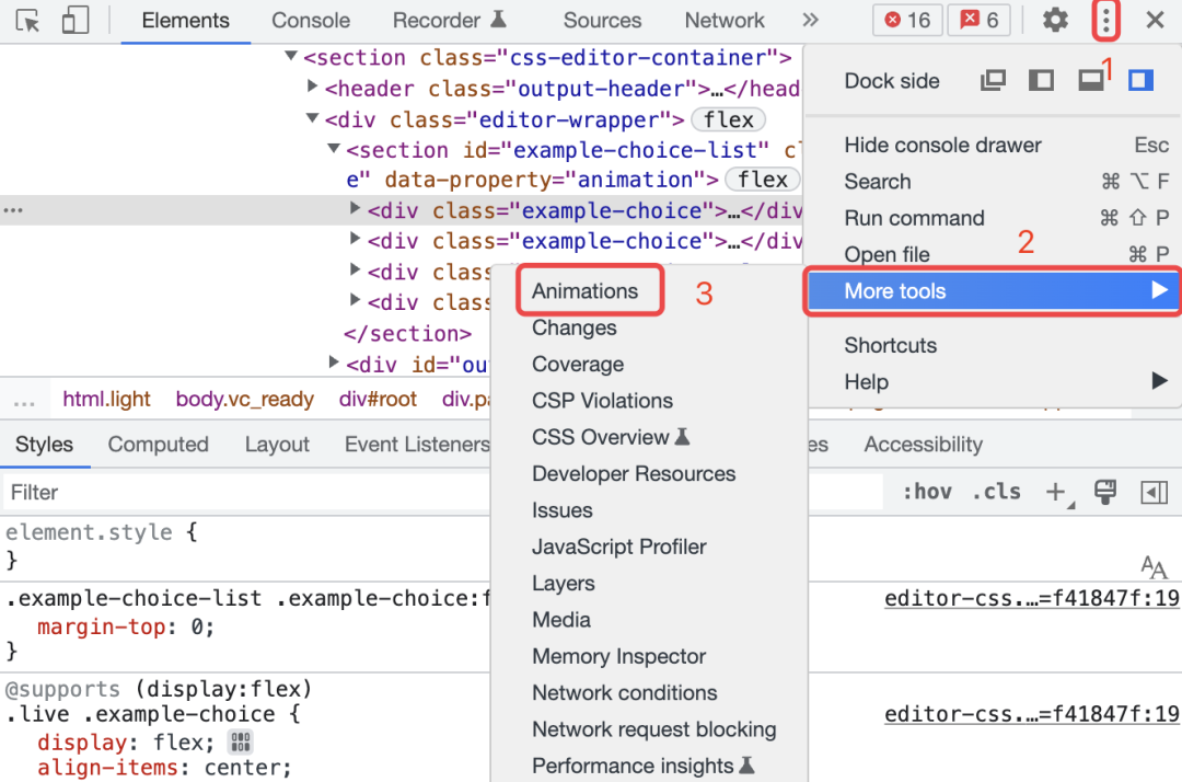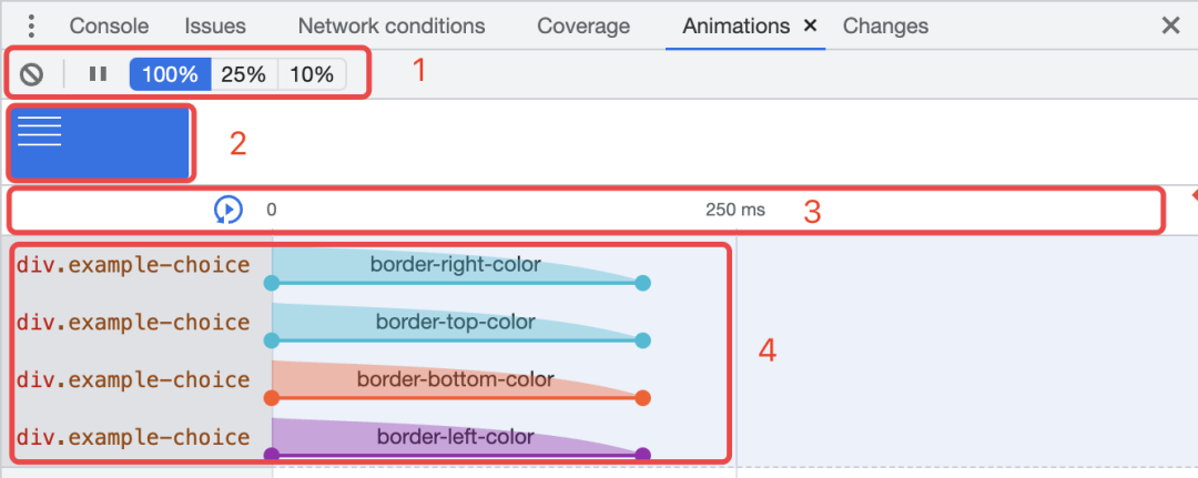 Chrome DevTools 提供了检查和修改动画的功能。它可以帮助我们播放动画、修改动画时间并分析特定时间范围内的视图。
