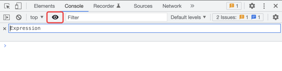实时表达式是一种在表达式更改时显示其值的功能。这有助于追踪代价高昂的表达式(如动画中使用的表达式)或变化很大的表达式(例如,如果正在遍历数组)的问题。它会将 Console 面板里的表达式置顶,并且能随着用户点击的变化,而动态刷新该置顶的表达式。
