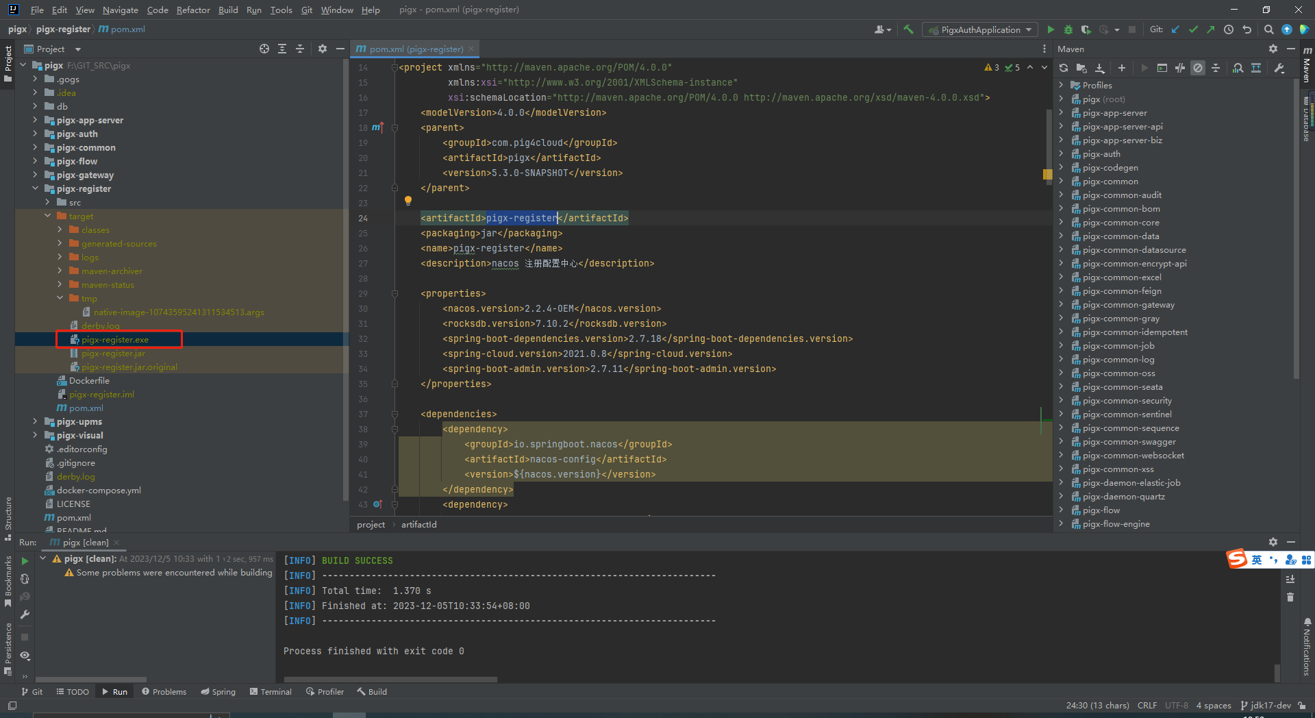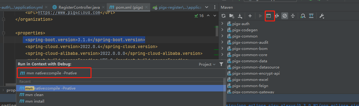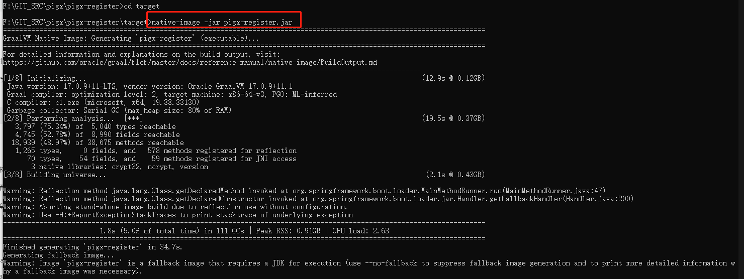 native-image -jar pigx-register.jar