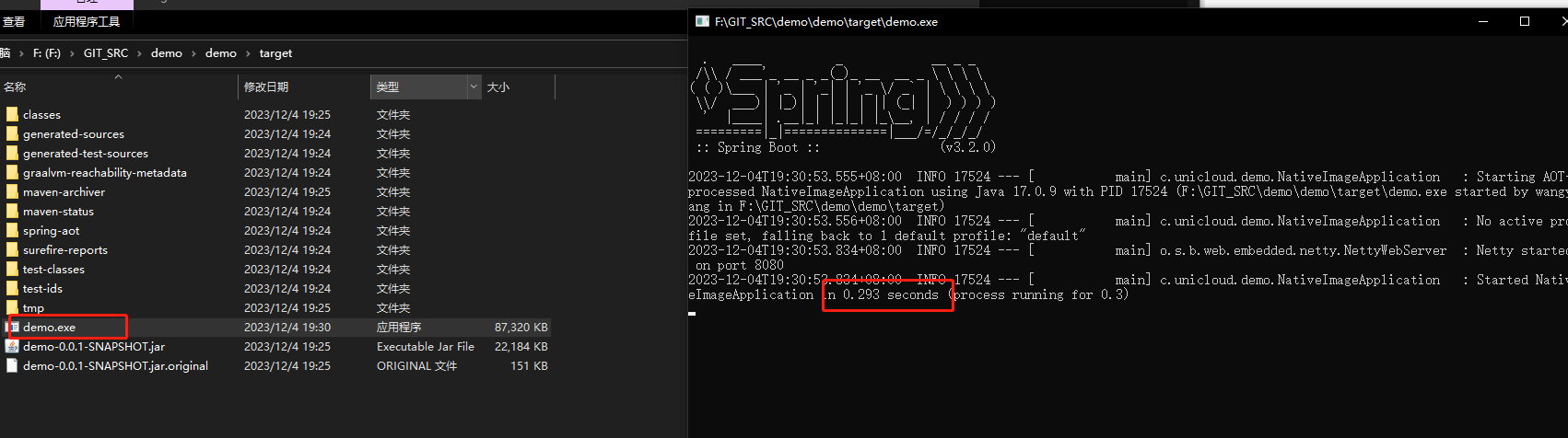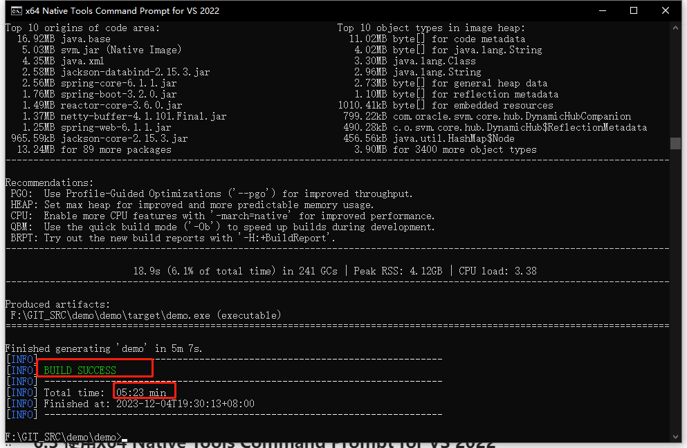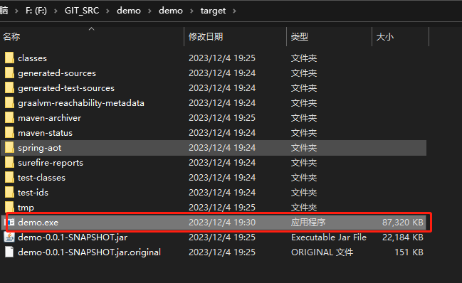 - 构建镜像较大:demo-0.0.1-SNAPSHOT.jar(21.6 MB)、demo.exe(85.2 MB )