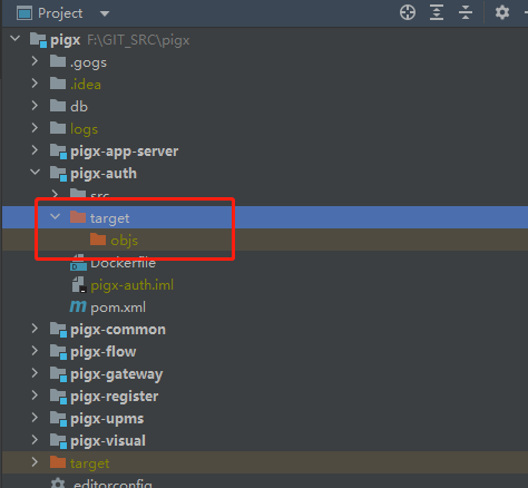 目前看target目录只有一个objs的空目录