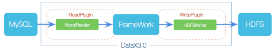 DataX本身作为离线数据同步框架,采用Framework+plugin架构构建。将数据源读取和写入抽象成为Reader/Writer插件,纳入到整个同步框架中