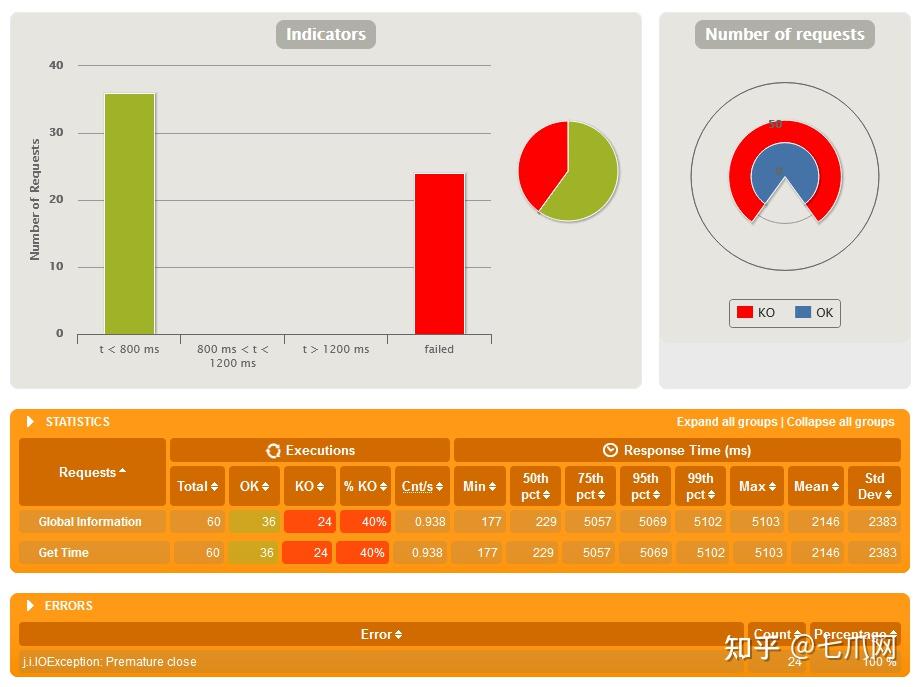 这次响应时间分布更广,从最小的 129ms 到另一边的 4693。
