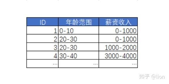 例如年龄,我们不会存“23",而是会存"20-30"。收入我们不会存”999“,而是”0-1000“。如果存准确值的话,数据量会过于高。从分析角度,我们往往也只需要一个模糊的范围即可。