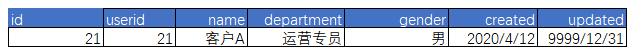 新增一行数据,created为业务系统的创建时间,updated为9999-12-31