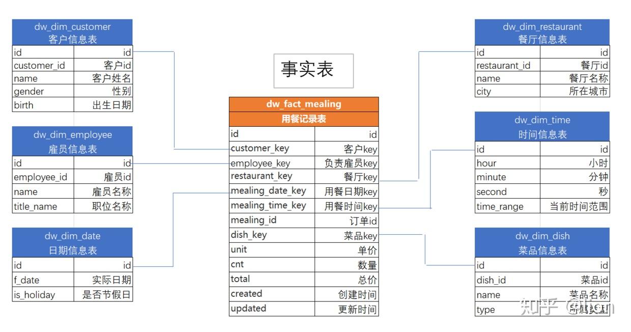 也就是说:吃了多少东西,多少钱——这些属于fact;在哪里吃、什么时候吃?这些属于dim。