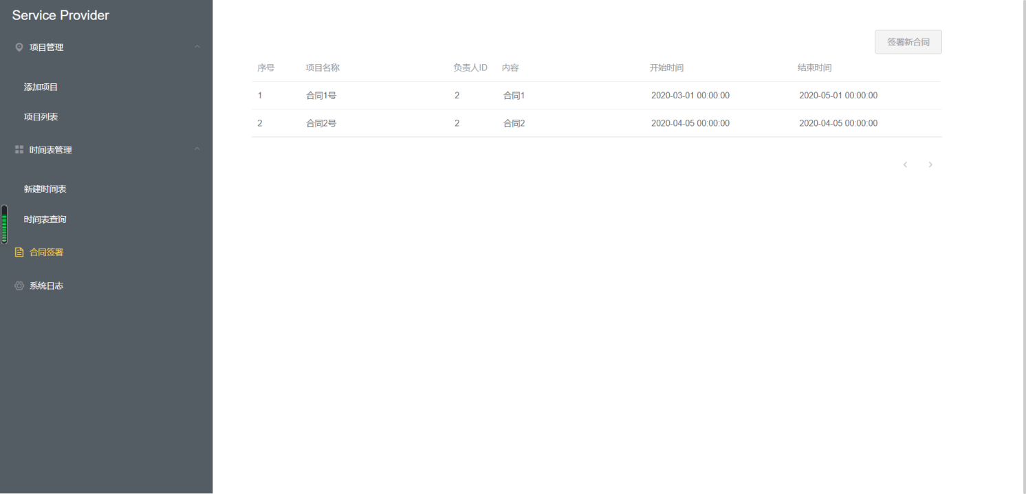 - 合同功能:签署合同,查看合同