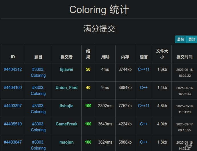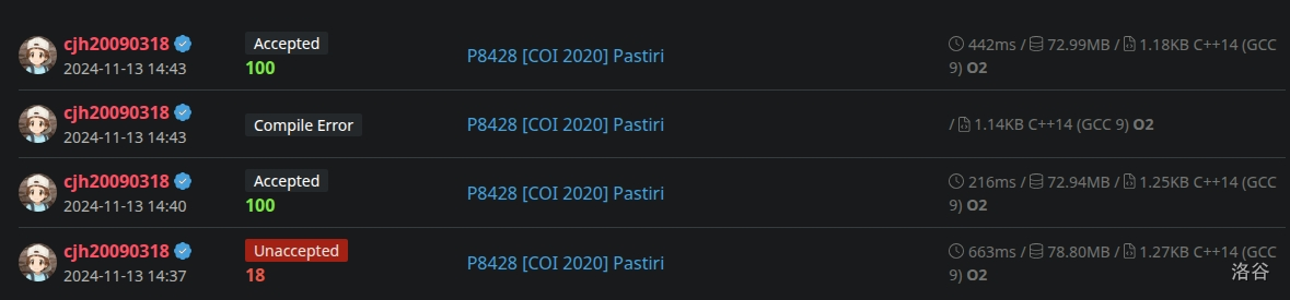 这个评测系统,C++(14) 的语言标准比 C++11 高,导致大家都去选了表面上最高的 C++11 结果编译失败,运行速度也非常堪忧,自带超大常数。