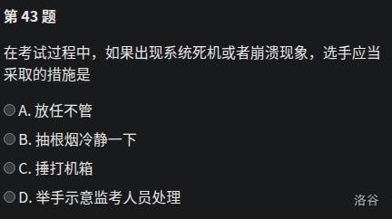 下午说要提早到,但是忘了,所以两点半准时到达了机房,发现已经断网了。考试文件也没下,潘总还在对面处理事物不好进去打扰,然后干等了十几分钟终于拿到了题面。