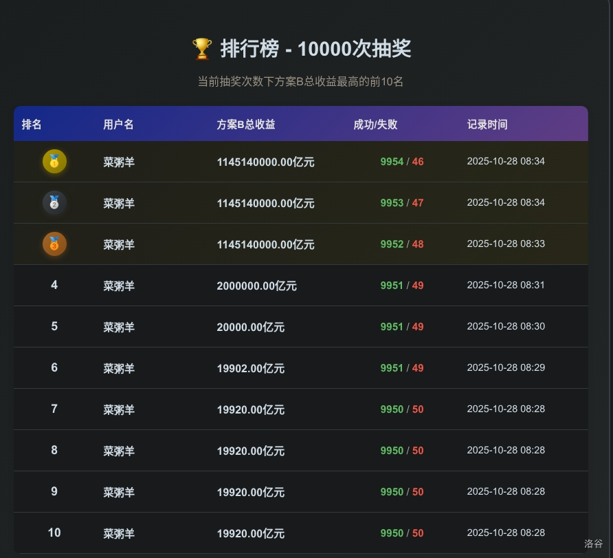 持续研究 概率模拟器,扶持菜粥羊大帝霸榜,人类的运气一败涂地。