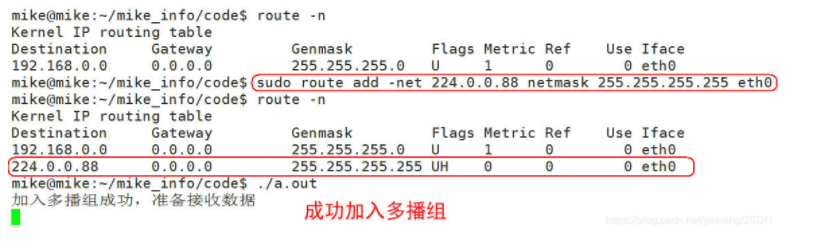 sudo route del -net 224.0.0.88 netmask 255.255.255.255 eth0 //把224.0.0.88从路由表中删除