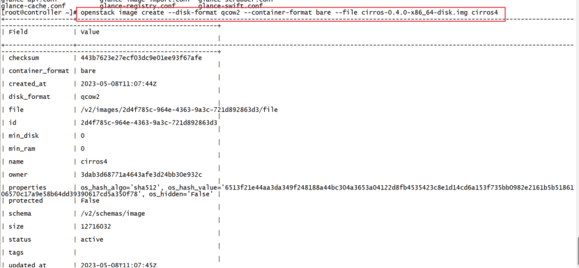 openstack image create --disk-format qcow2 --container-format bare --file cirros-0.3.4-x86_64-disk.img cirros4