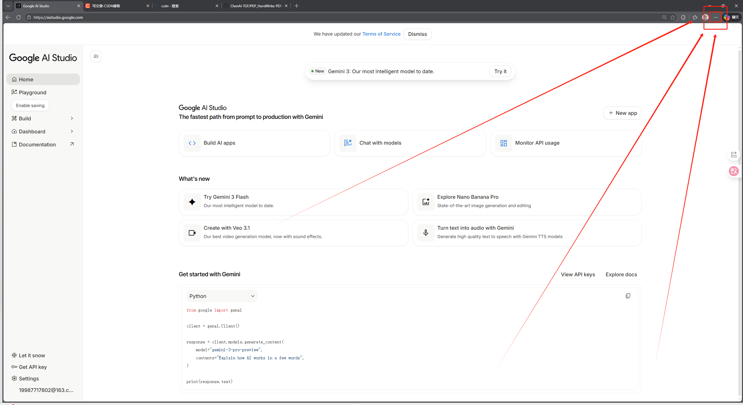 解决Gemini无法进入显示 “Google Al Studio 和 Gemini AP| 的可用区域” 的问题