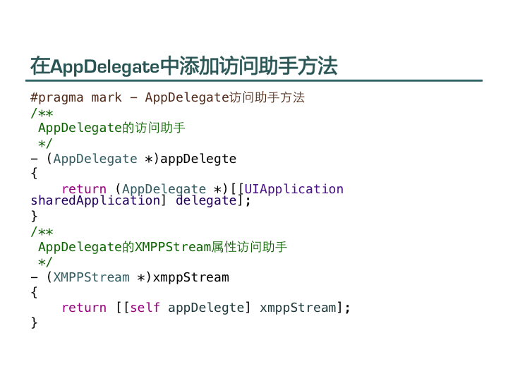 AppDelegate中,以便于全局访问• 在AppDelegate中添加以下属性和方法定义