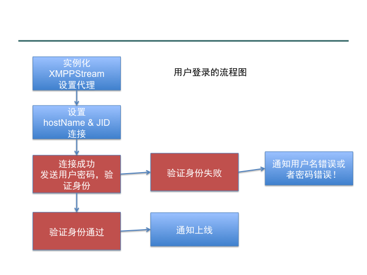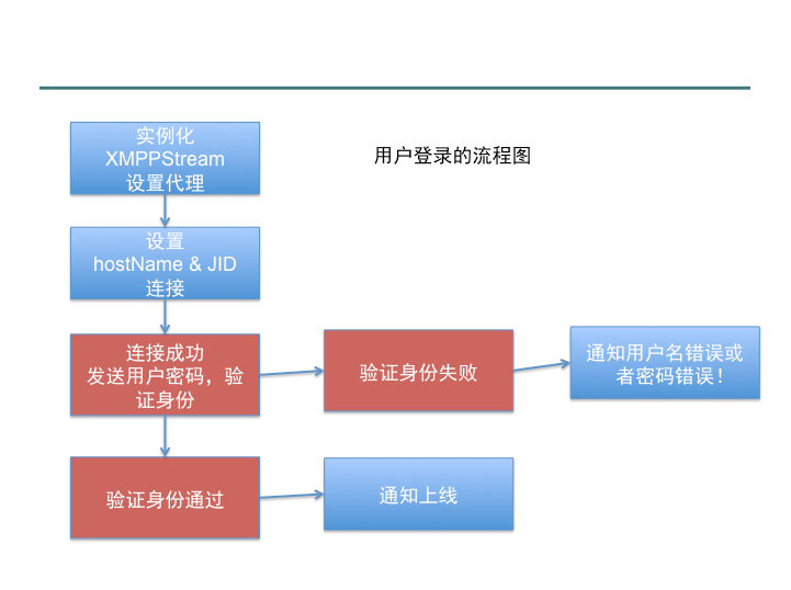 • 3. 在完成连接的代理方法中验证用户密码,连接完成后XMPPStream 的isConnect属性为YES