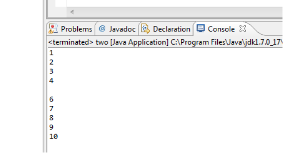 2.输出0-9之间的数,但是不包括5。(知识点:条件、循环语句)