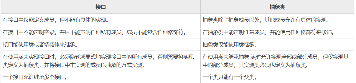 接口成员,不允许使用 public、private、protected、internal 访问修饰符,默认为public,不可自己书写。不允许使用 static、virtual、abstract、sealed 修饰符。不能定义字段,定义的方法不能包含方法体。