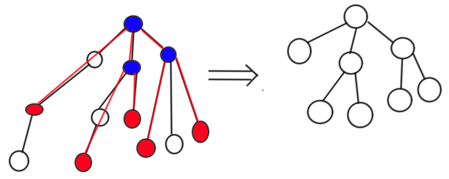 如图,红色点为 关键点,蓝色点是所必须的 LCA点,右图是左图的虚树