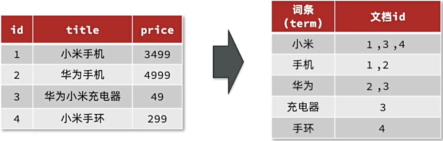 不仅会为文档的id建立索引,分词后,还会给词条建立索引。 -