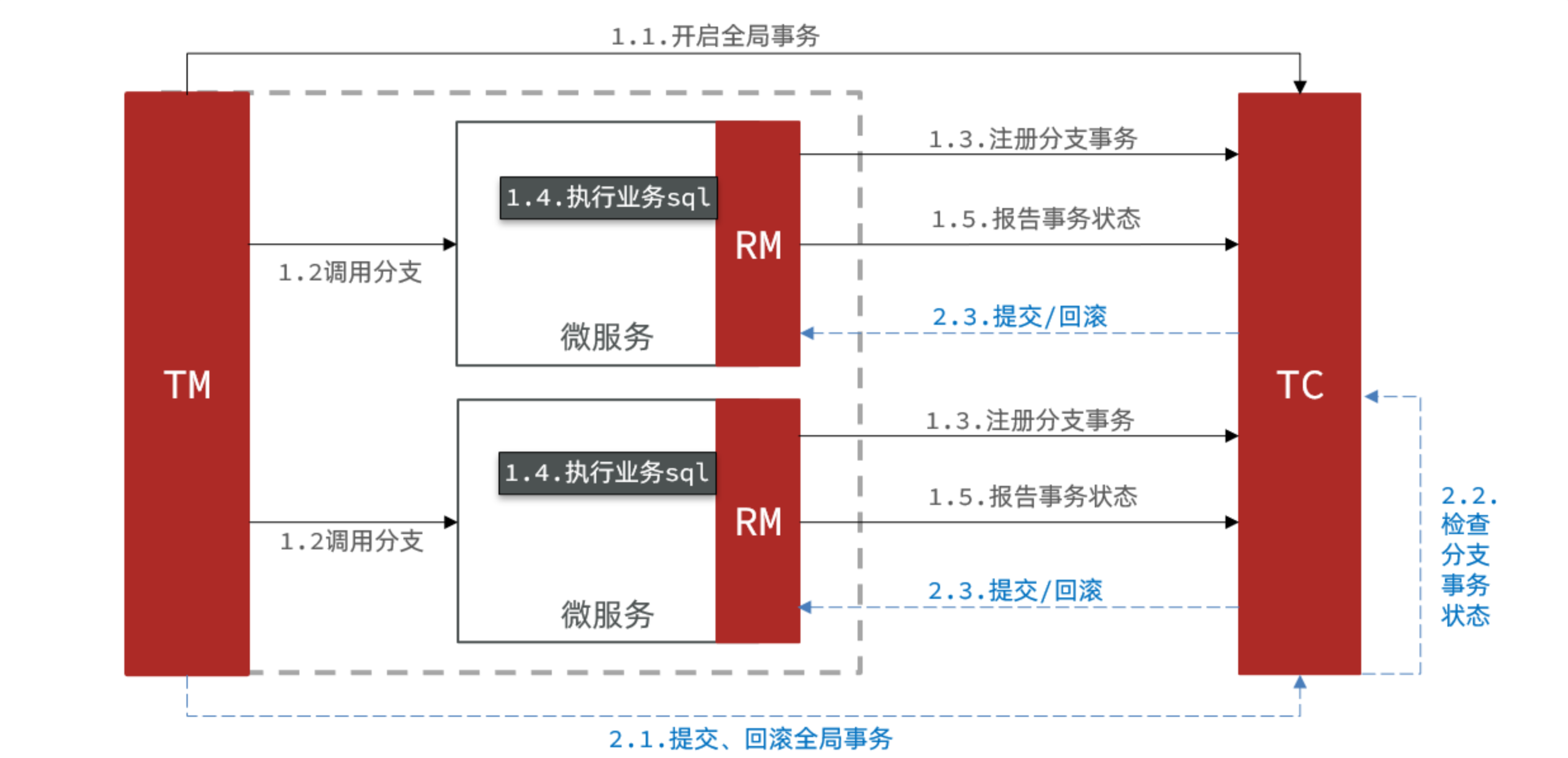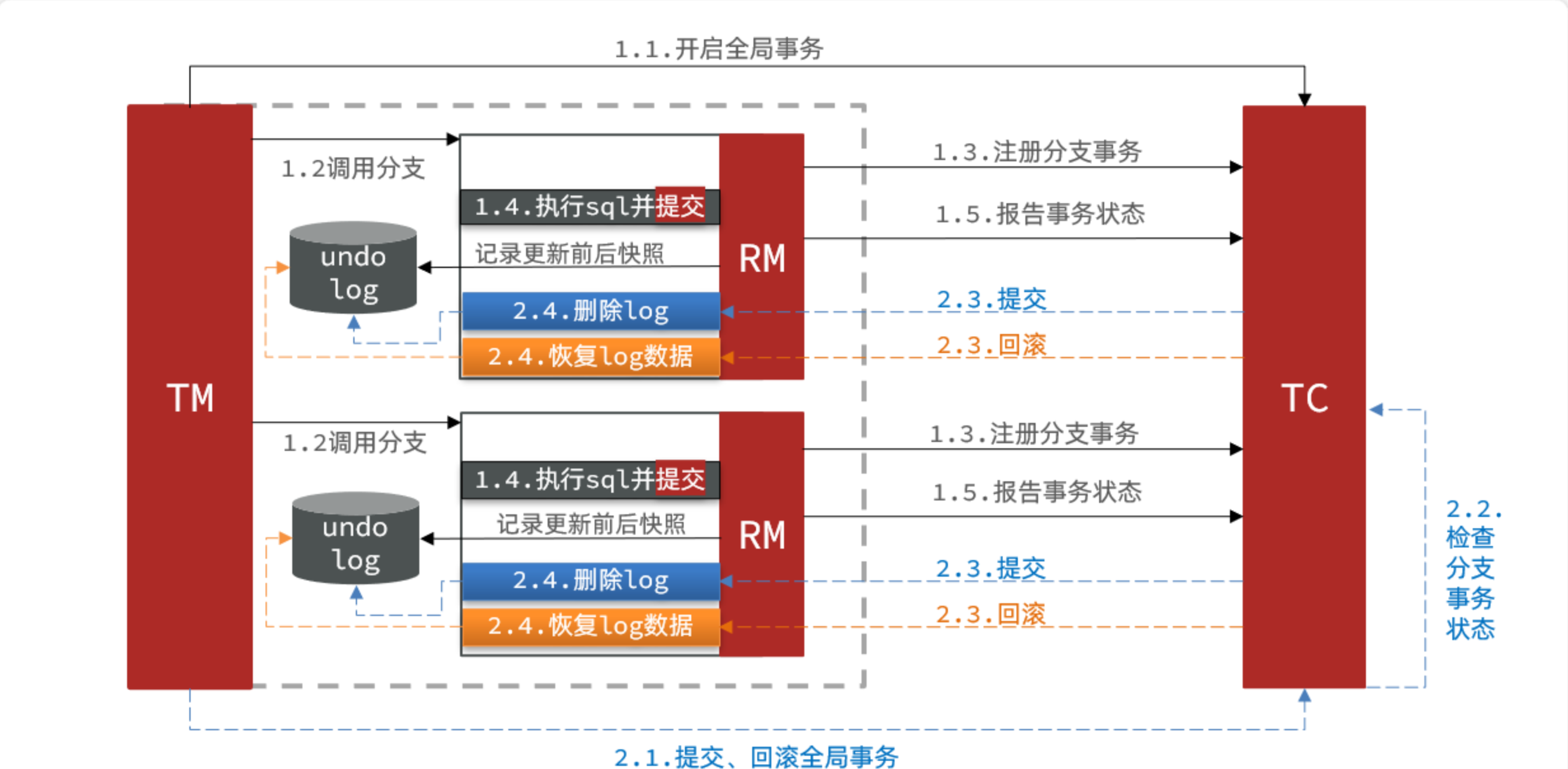 6.TC检查分支事务状态,然后通知TM是否需要回滚
