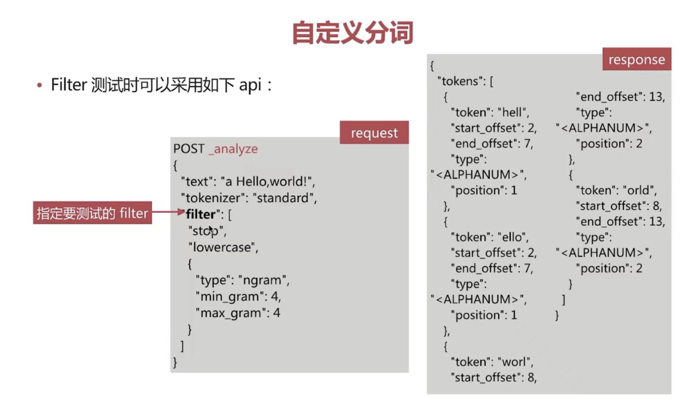 分词配置,可以自定义 char_filter、tokenizer、filter、analyzer