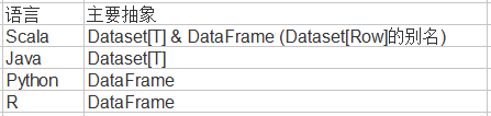 注意:因为Python和R没有编译时类型安全,所以我们只有称之为DataFrame的无类型API。