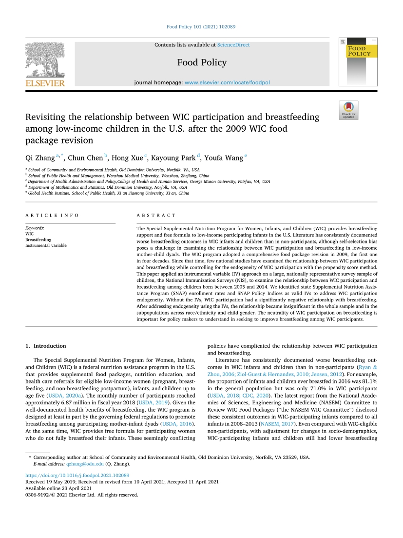 Revisiting the Relationship between WIC Participation and Breastfeeding among ow-Income Children in the U.S. after the 2009 WIC Food Package Revision