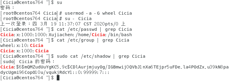 cat /etc/passwd | grep Cicia #在passwd中找到Cicia