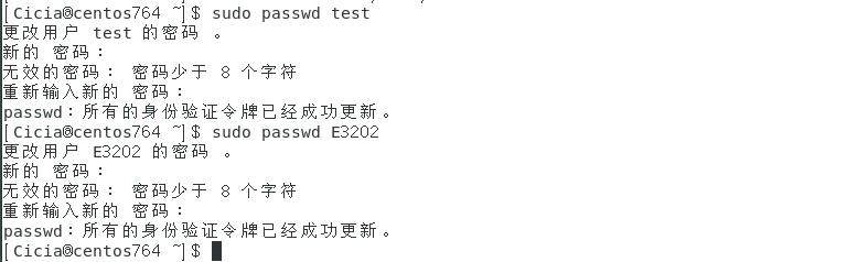 3)创建两个账号,一个账号为test,另外一个账号以大写E开头加上你自己学号尾数4位,两个账号分别设置密码及管理员权限,账号设置完成后,切换账号简单查看信息后,删除test账号,保留另一账号,以备后续操作。