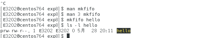 当使用 mkfifo 创建 hello 文件后,查看文件信息如下: